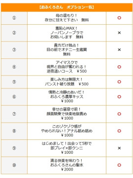 『おふくろさん』に来てみませんか? のんびりと癒しの時間を過ごせます。 また、熟女たちの包容力に どんどん甘えてください。 いつもは亭主関白なアナタも、 幼かったあの頃に戻って… 当店には、おふくろさんが60名以上在籍。 溢れる母性、巨乳、レア出勤、清楚系、性欲旺盛… 様々なタイプの女性が揃っております。 お好きな年代・ルックス・ご奉仕タイプなど、 自分に合ったおふくろさんを見つけてください。 おふくろさんならではの 心遣い、温もり、優しさ キュンと甘酸っぱいひと時をお楽しみください! ご自宅・ビジホで遊ばれる方 初回指名は無料です。 交通費1,000円~ 60分11,000円~ お得なトクトクコースで遊ばれる方 60分13,500円〜 | |