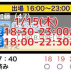 1/15(木)🈳状況✨️
