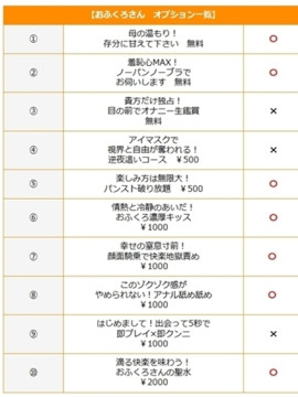『おふくろさん』に来てみませんか? のんびりと癒しの時間を過ごせます。 また、熟女たちの包容力に どんどん甘えてください。 いつもは亭主関白なアナタも、 幼かったあの頃に戻って… 当店には、おふくろさんが60名以上在籍。 溢れる母性、巨乳、レア出勤、清楚系、性欲旺盛… 様々なタイプの女性が揃っております。 お好きな年代・ルックス・ご奉仕タイプなど、 自分に合ったおふくろさんを見つけてください。 おふくろさんならではの 心遣い、温もり、優しさ キュンと甘酸っぱいひと時をお楽しみください! ご自宅・ビジホで遊ばれる方 初回指名は無料です。 交通費1,000円~ 60分11,000円~ お得なトクトクコースで遊ばれる方 60分13,500円〜 | |