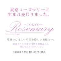 経験者ならではの、楽しい時間を提供できる女性のみを採用としています。 未経験である新人さんは、緊張という、この時でしか感じることの 出来ない貴重な時間に価値があり、なかなか出会うことも、運の良さとなる事でしょう。 東京を代表する、お店の一つとして、”本物の人妻”を ご用命頂けますよう精進してまいります。 是非一度、東京ローズマリーへお越しくださいませ | |