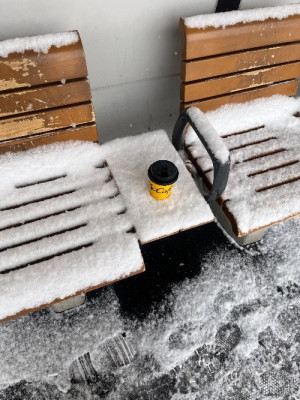 朝起きたら雪が、、