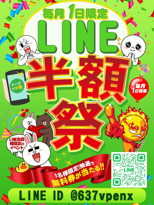 毎月1日は【LINE半額祭】トークをするだけで半額!?更に限定1名様に無料券も当たる!!