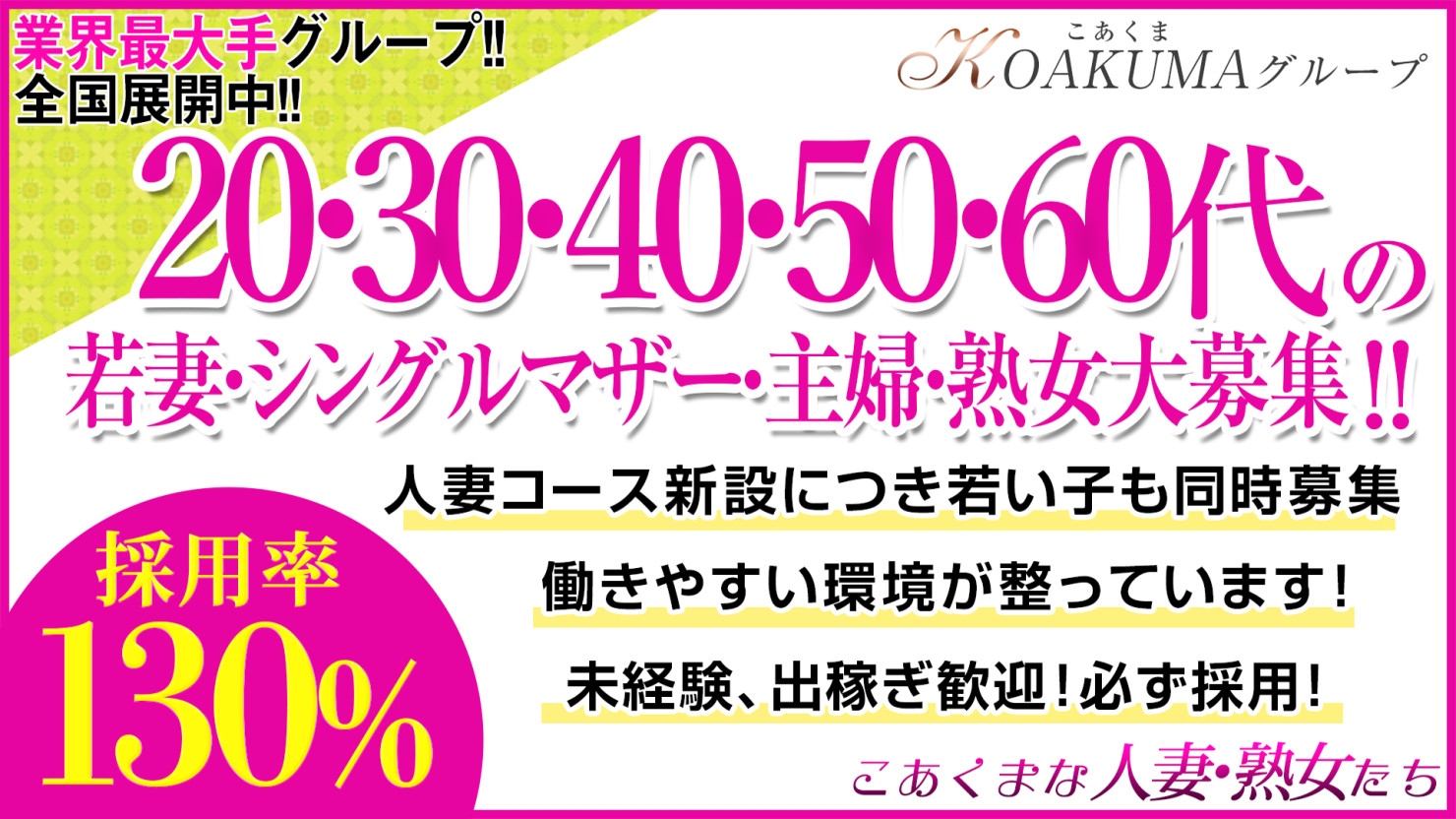 こあくまでは誰でも稼がせる自信があります!!!風俗が初めての方でも丁寧に指導いたします!